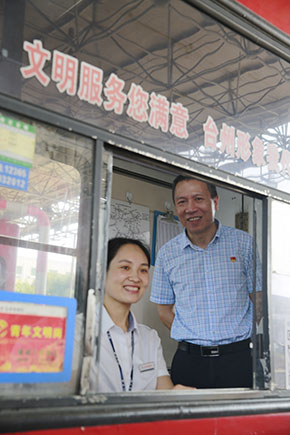 “今天車流量多嗎?你們是公司形象的代表,請把最優(yōu)質(zhì)的服務(wù)提供給他們。”在臺州收費(fèi)所一號崗?fù)だ铮瑥埥ㄆ揭贿呂繂柈?dāng)班收費(fèi)員,囑咐他們注意安全和休息,一邊鼓勵他們堅持做好文明服務(wù)。他還到黃土嶺隧道所、臨海南收費(fèi)所慰問當(dāng)班執(zhí)勤隊(duì)員和收費(fèi)員。此時,各所食堂管理房正處于改造階段,他仔細(xì)查看了各所食堂和工作場所,了解大家的飲食和工作環(huán)境。