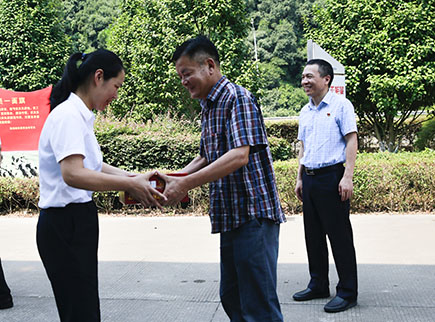 圖為公司工會主席項(xiàng)義超給收費(fèi)所員工送上消暑品