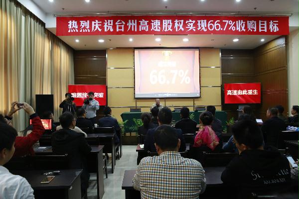 臺州高速股權集中和優(yōu)化工作領導小組辦公室主任、臺州高速集團總經理張建平鄭重地宣布:“至此,全市共完成臺州高速股權轉讓6947萬股,臺州市屬國企及黃巖財務開發(fā)公司合計持股數1.441億股,完成了66.7%的預定收購目標。”