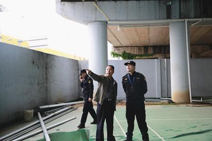 圖為公司安保部負責人與高速路政人員在現(xiàn)場指導拆除作業(yè)