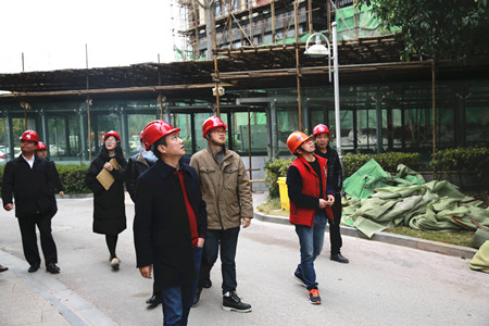 圖為集團(tuán)副總經(jīng)理羅小將帶隊(duì)在文鼎苑工地檢查