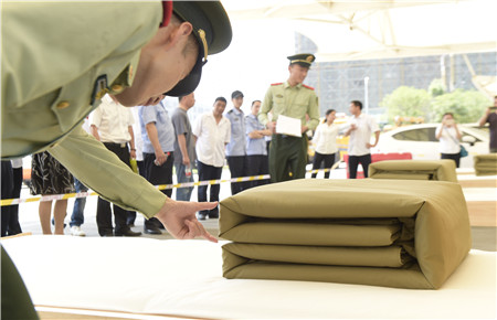 教官用手量量被子上下厚度,四周細細觀察,在兩床“豆腐塊”被子之間反復來回查看了幾遍,又與另一個教官指指點點商量了好久,不僅是參賽者,圍觀者都開始緊張了。確實,按照內務整理要求,這兩床已被疊成豆腐塊的被子折得有棱有角,被面光滑,上下勻稱,外行人看來就是一模一樣的完美,沒有任何區別了。“讓他們都晉級吧。”旁觀者說。教官笑著搖搖頭,對大家解釋道:“3號床勝出,因為它是雙面折法,在規定時間內兩面修整程度都一樣平整,這樣比起來,5號床稍遜一籌。”