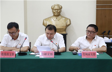 圖為臺(tái)州支部書記王小勇發(fā)言