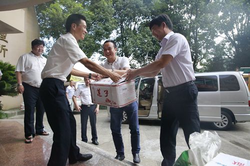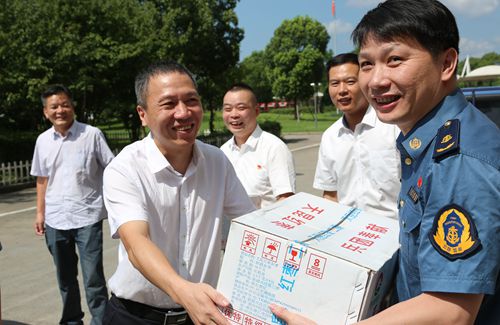 圖為集團副總經理陳保衛、羅小將送清涼現場
