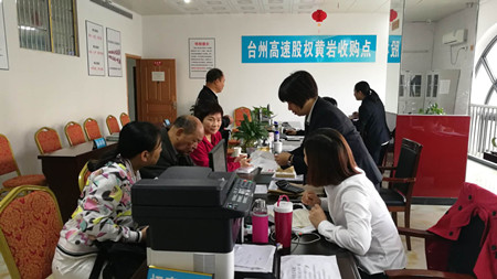 10月31日,全市共辦理臺州高速股權(quán)協(xié)議轉(zhuǎn)讓904筆,創(chuàng)9月8日股權(quán)集中收購以來單日最高紀錄。 近期,在市委、市政府高度重視下,各有關部門積極配合,各縣(市、區(qū))政府大力支持,協(xié)同推動。尤其是近日,臺州市國資委主任徐豪就臺州高速股權(quán)集中和優(yōu)化的有關問題再次接受了臺州各大媒體的采訪,進一步分析了高速股權(quán)集中優(yōu)化工作的目的、意義及收購目標實現(xiàn)情況等問題。各縣(市、區(qū))在前期分解落實宣傳動員責任的基礎上,分管領導多次親自到收購點開展調(diào)研,了解當前股權(quán)收購情況,存在困難和問題,掌握未轉(zhuǎn)讓高速股權(quán)的法人股東,摸清機關干部持股情況,進行再動員、再宣傳和再督促,推動股權(quán)收購工作。 臺州高速集團利用市、縣報社、電視等各大媒體和集團網(wǎng)站、微信等媒介,運用公交車、公告欄等,連續(xù)刊播股權(quán)收購公告,多輪次電話、短信通知到每位股東,一再分析闡明股權(quán)轉(zhuǎn)讓的意義、重要性和必要性,明確告知股權(quán)收購時間和上市的可能性。高速股權(quán)各收購點合法規(guī)范簡化轉(zhuǎn)讓程序,工作人員熱情細致,服務周到,業(yè)務熟悉,高效率辦事。設立流動股權(quán)收購點,到臨海、溫嶺及股東人數(shù)集中的鄉(xiāng)鎮(zhèn)、單位上門辦理股權(quán)收購手續(xù)。廣大股東踴躍轉(zhuǎn)讓,部分熱情的股東還幫助宣傳,幫助親戚朋友代辦轉(zhuǎn)讓手續(xù)。在國慶節(jié)后,迎來了股權(quán)轉(zhuǎn)讓小高潮,曾出現(xiàn)連續(xù)三天全市協(xié)議轉(zhuǎn)讓股權(quán)累計超過百萬股的喜人成績。