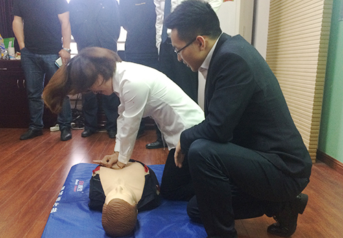 圖為參加培訓(xùn)的人員 本次培訓(xùn)特別邀請杭州五進(jìn)健康管理服務(wù)中心湯瑞芳老師到場授課,為大家講授意外事故急救方法與步驟,職業(yè)病、慢性病預(yù)防等知識。授課過程中,參訓(xùn)人員彼此互動,并利用CPR假人模型實(shí)踐現(xiàn)場急救,根據(jù)參會員工的實(shí)際情況現(xiàn)場演示職業(yè)病、慢性病的檢查與防治方法,課程氣氛熱烈。