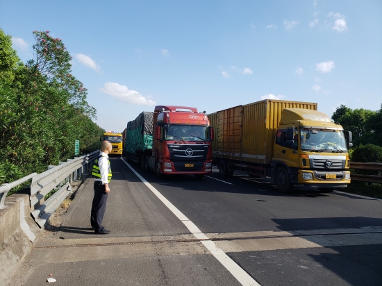 時間已經過去了2個多小時,堵車達到了十多公里,盡管當天的駕駛員都極有素質,沒有占用硬路肩,但大型救援車僅僅硬路肩還是不夠,還需要占用一部分主車道。每到開不過去的地方,毛慶榮就下車指揮前后車輛往超車道靠。