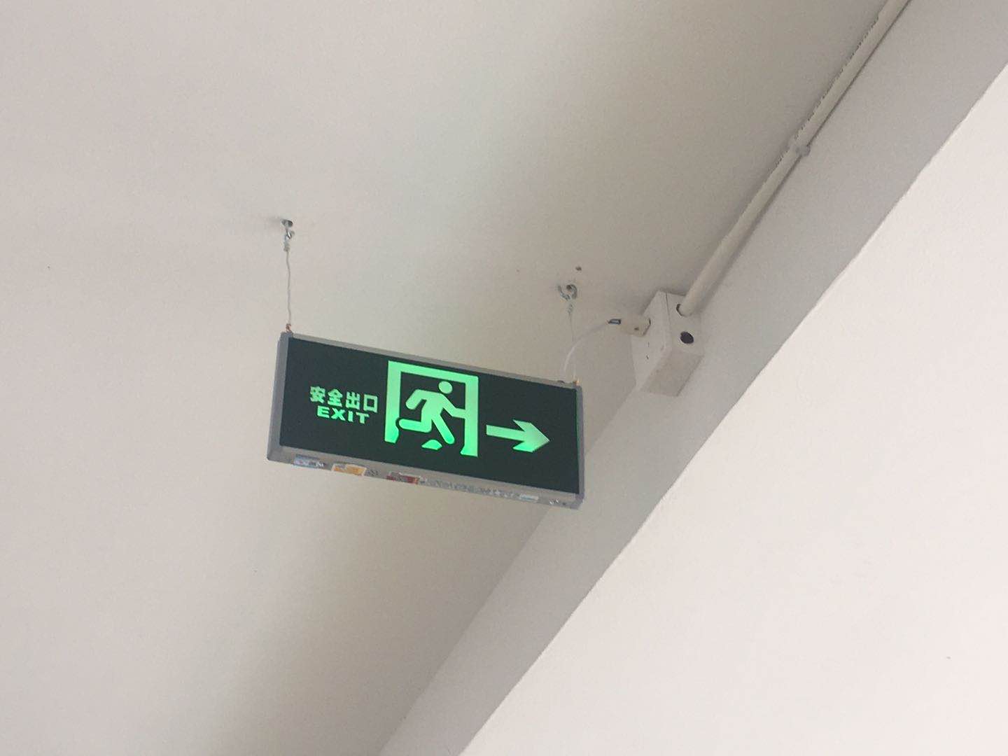 圖為安裝好的逃生指示牌 “之前收費站一停電,大樓就比較昏暗,很容易踩空樓梯,現在有這些應急燈,心里踏實多了。”臺州南收費所一位監控員望著這些新裝的燈具放心地說道。 項寅曉