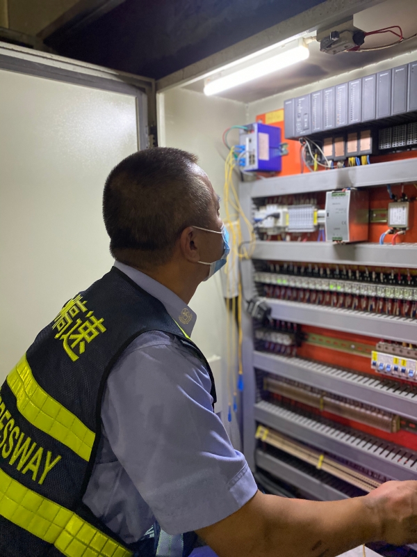 雖然隧道內(nèi)沒有烈日的灼燒,但日均4萬的車流,加上尾氣排放,導(dǎo)致隧道內(nèi)的氣溫遠(yuǎn)高于室外。當(dāng)室外37°C時(shí),整個(gè)隧道里宛如一個(gè)蒸籠。盡管如此,廣場(chǎng)上、電纜溝上隨時(shí)都有執(zhí)勤隊(duì)員忙碌的身影。他們來回徒步穿梭于隧道,檢查指示燈、消防設(shè)備箱、緊急電話、火災(zāi)報(bào)警等設(shè)施設(shè)備,排查各類安全隱患,修復(fù)受損設(shè)備,處理各種突發(fā)情況。一趟下來臉和胳膊被熏得黝黑,口罩、衣服濕了又干、干了又濕,盡管工作量大、強(qiáng)度高,他們從不喊苦說累。